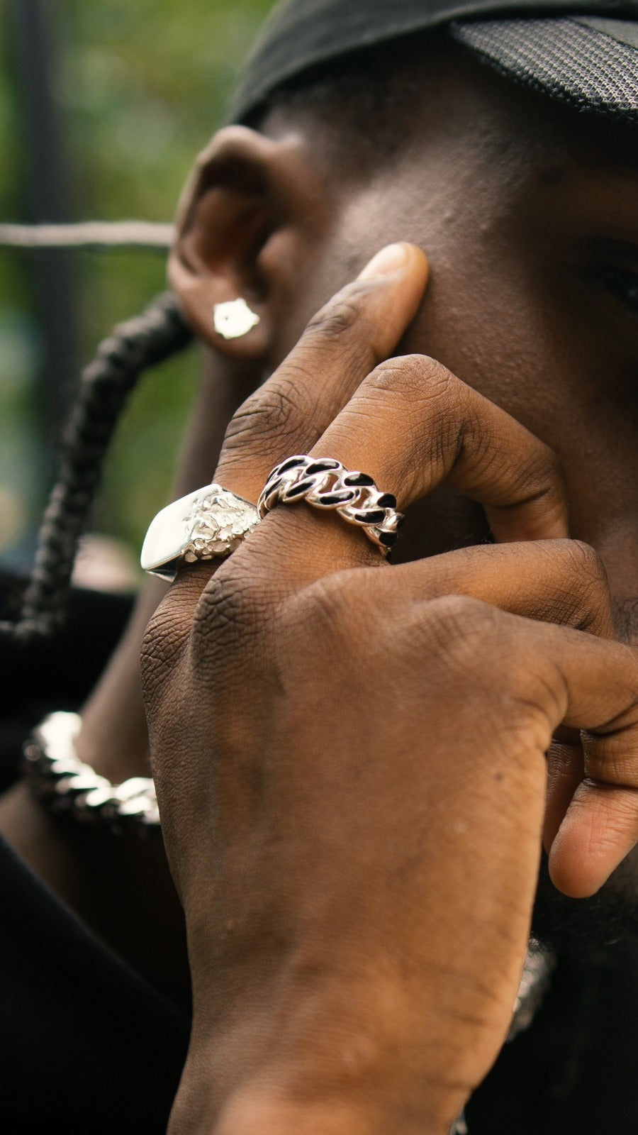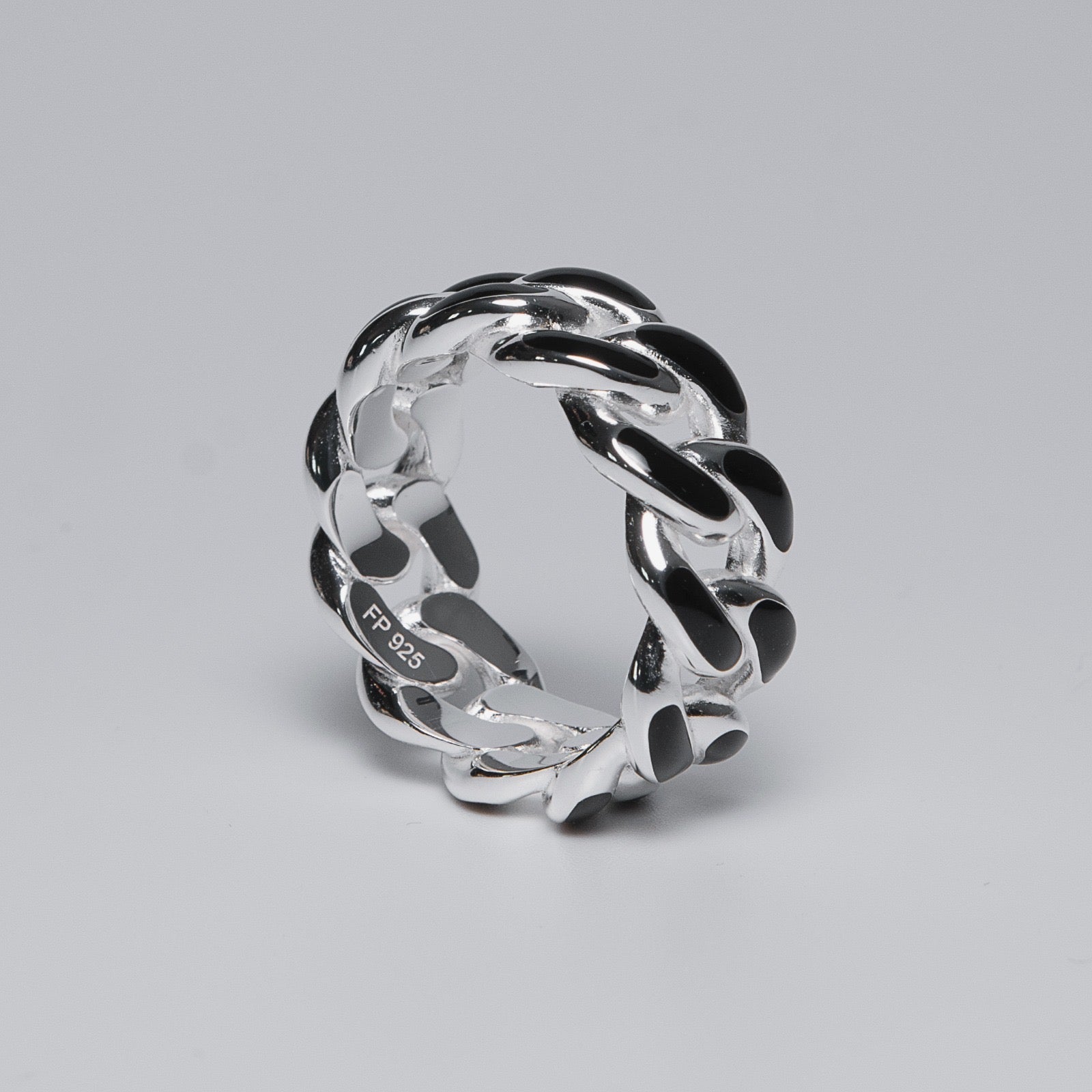 The Cloisonné Capsule offers immaculate bursts of coloured enamel fused with hallmarked 925 Sterling Silver for a premium, style elevating staple for your wardrobe. The Neo-Black colourway introduces a bold black to a timeless, elegant cuban ring.