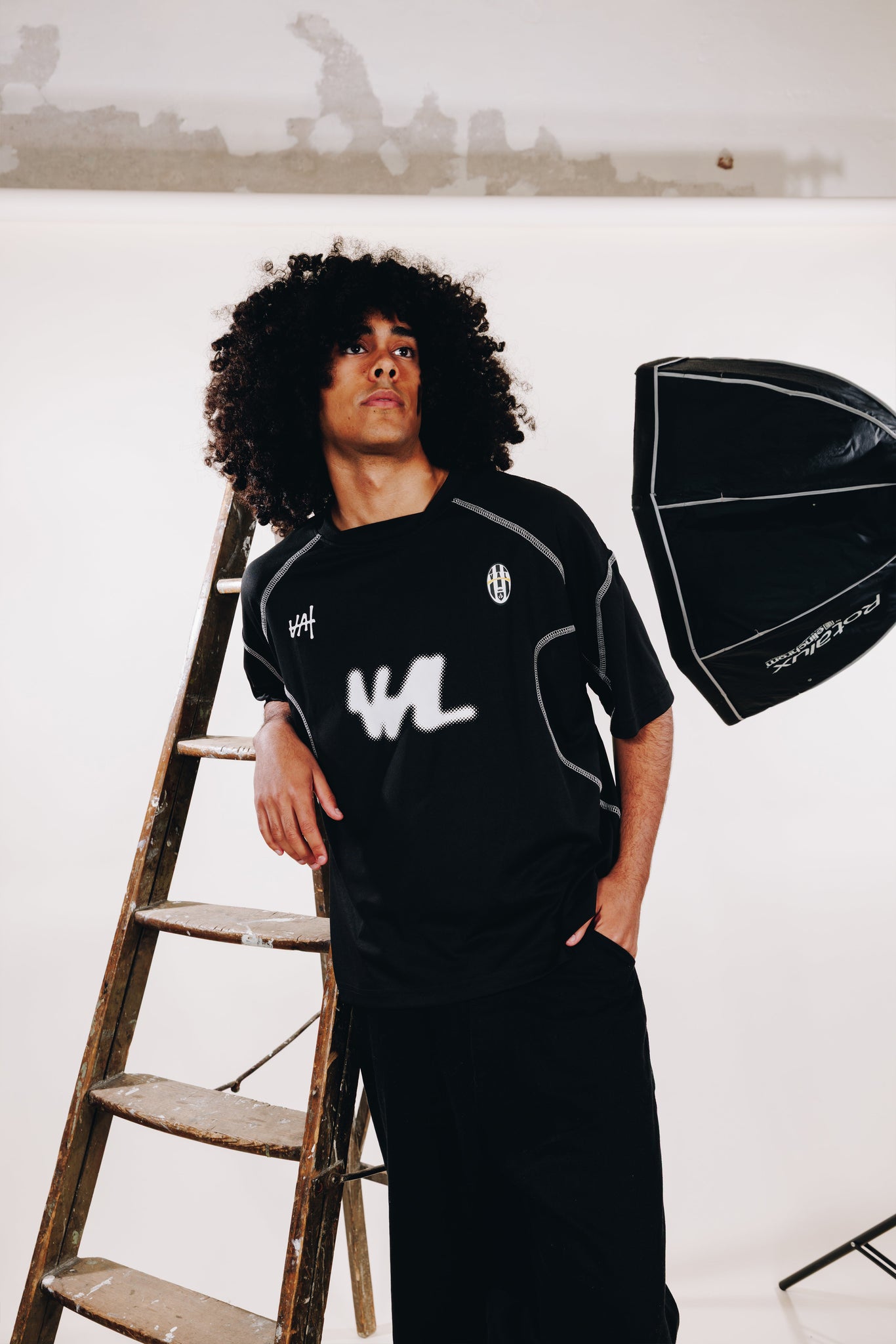 Med inspirasjon fra retro Premier League og Serie A - drakter, får du et plagg som balanserer nostalgi og moderne passform. De hvite sømmene gir drakten karakter, mens det svarte grunnlaget holder uttrykket rent og tidløst. Logoen er inspirert av Juventus, men klarer du å se hvilket Premier Leauge lag vi sikter til?