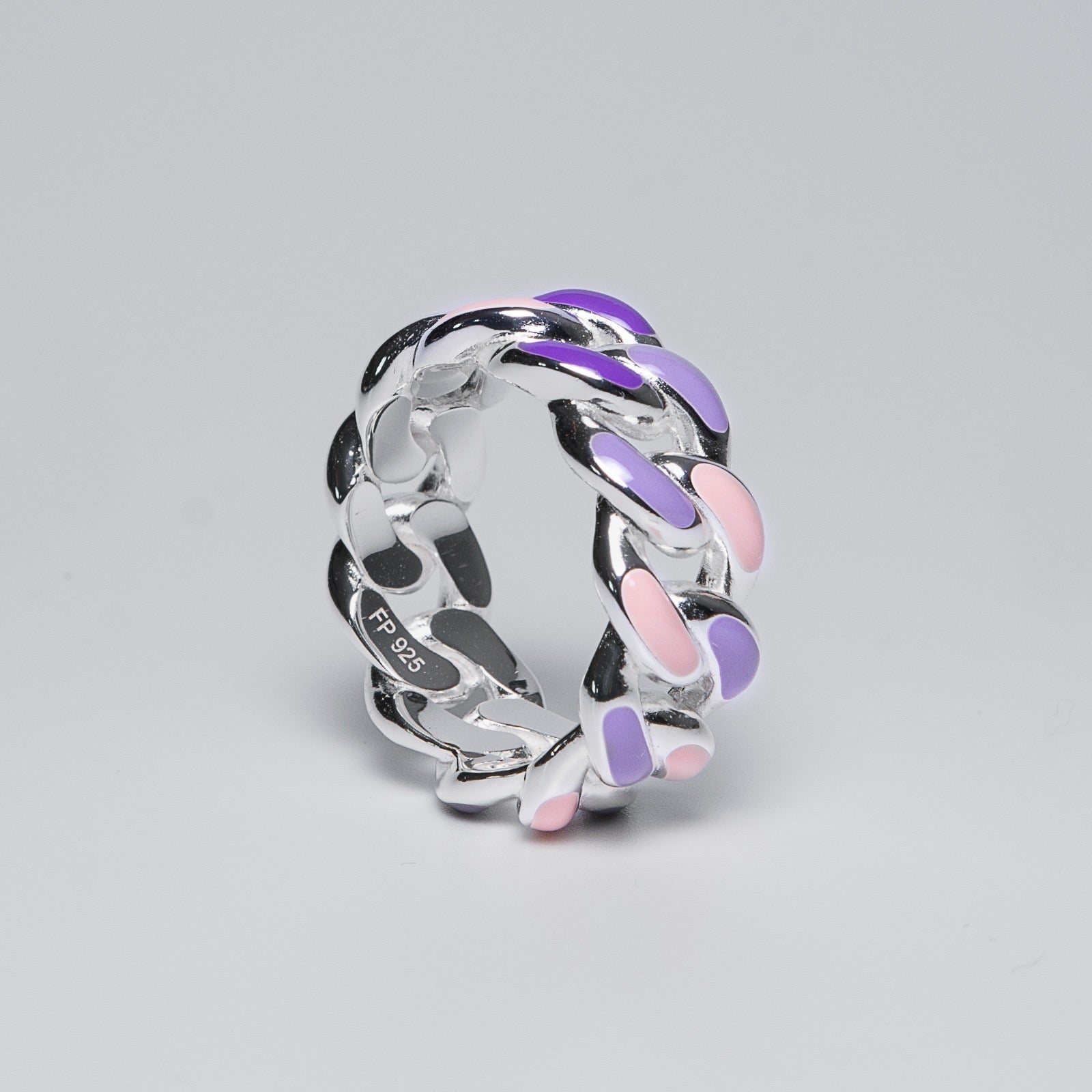 The Cloisonné Capsule offers immaculate bursts of coloured enamel fused with hallmarked 925 Sterling Silver for a premium, style elevating staple for your wardrobe. The Orchid Pink colourway introduces a swirl of colour to a timeless, elegant cuban ring.
