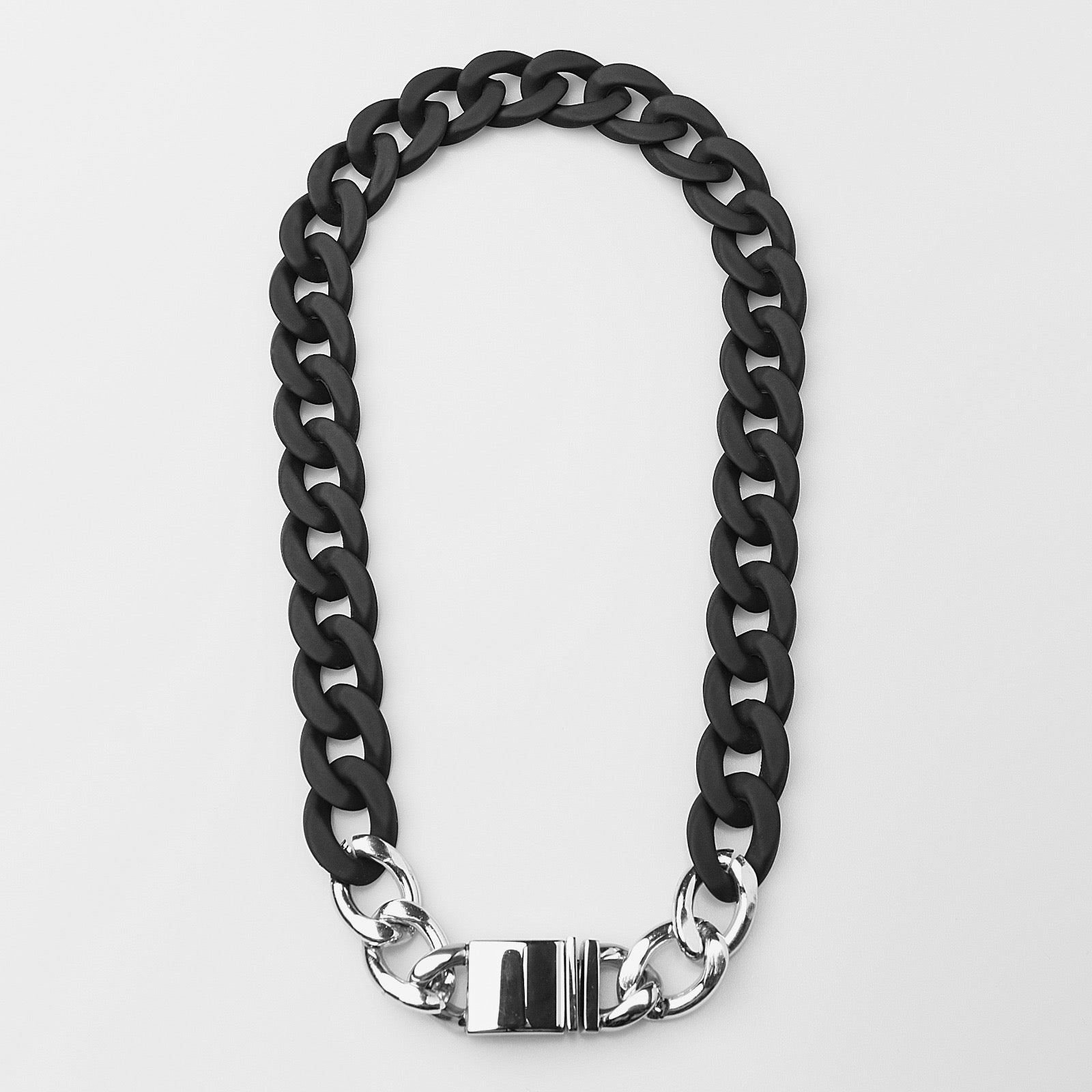 The Piano Cuban Chain is made up of Piano Black resin cuban links equipped with a soft touch coating. The chain is a part of the Matte-Works Capsule, a new, experimental showcase of four Resin Cuban's that have a matte finish and are seamlessly connected by a modish clasp.
